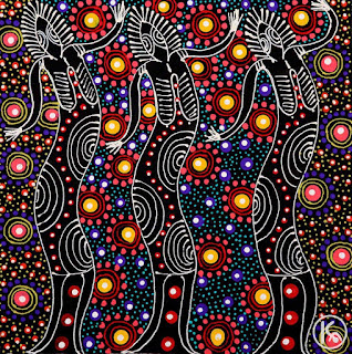 Παρατηρήσαμε έργα τέχνης ζωγραφισμένα με την τεχνική των Αβοριγίνων.